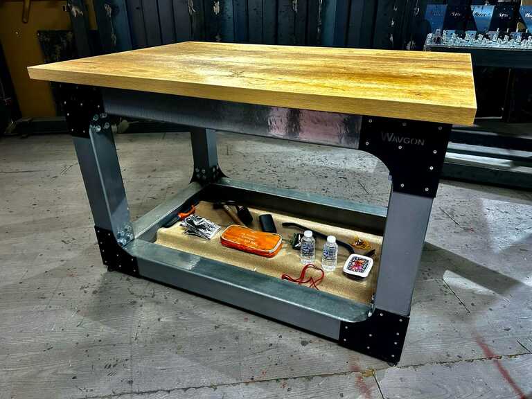 ✔️Masamızın Altı da Üstü de Komple Çeliktir. Üst Ahşap Tabla Çelik Sacın Üstüne Monte Edilmektedir.